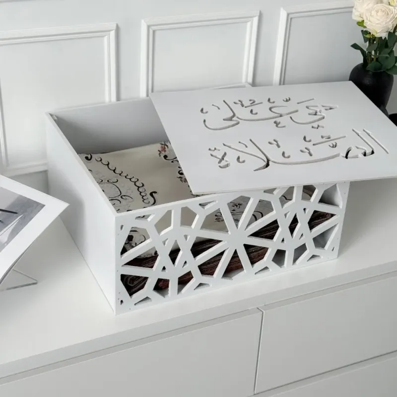 ✨ منظم السجاد الأبيض 🕌✨ 📌 رتّبي سجاداتك بطريقة أنيقة ومثالية مع منظم السجاد الأبيض! 🤍 يتميز بتصميم عصري مزيّن بالخط العربي 🎨 ليضيف لمسة فنية فريدة إلى منزلك 🏠.