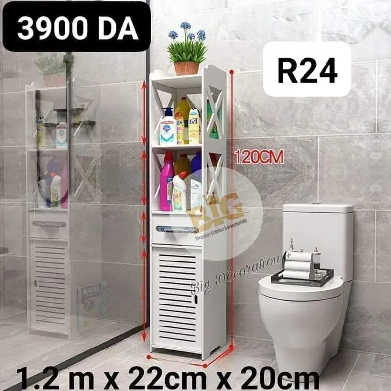 ✨ خزانة تخزين حمام طويلة وعصرية 🛁✨ ✔ أبعاد مثالية: ارتفاع 120 سم × عرض 22 سم × عمق 20 سم 📏 السعر: 3900 DA 💸